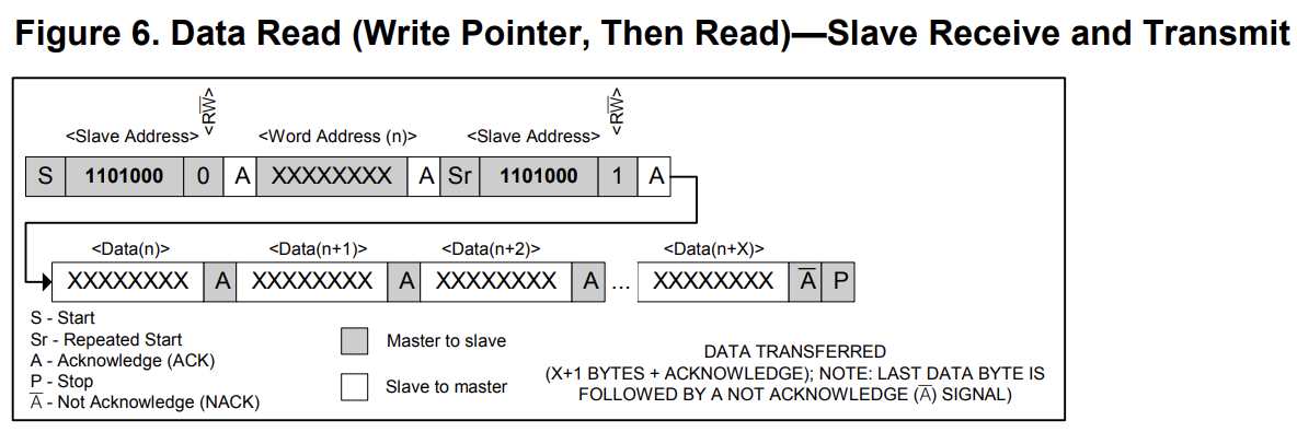 - 데이터를 읽기 위해서는 Slave Address를 먼저 전송하고 데이터를 읽어야함