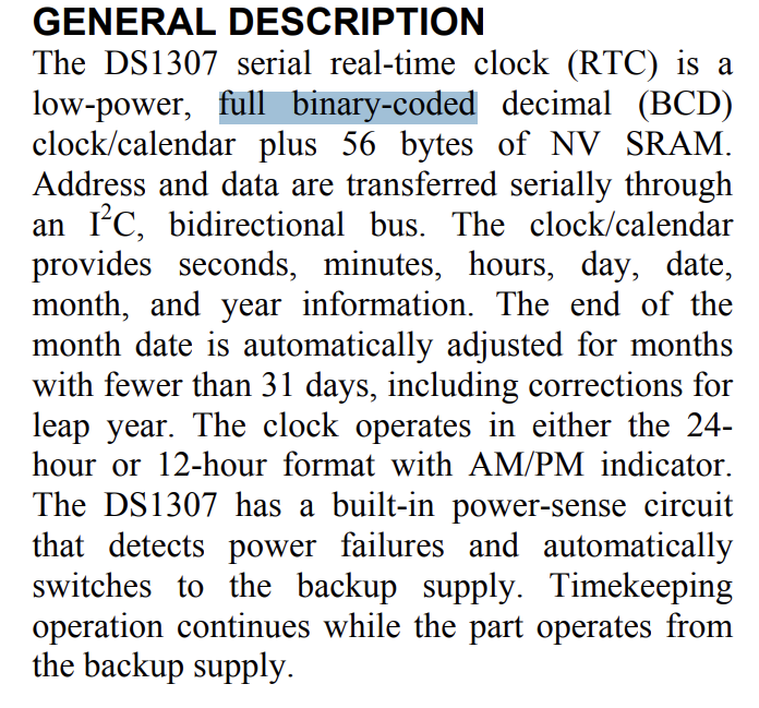 우) DS1307은 BCD(Binary coded decimal)로 설계되어 있다.
