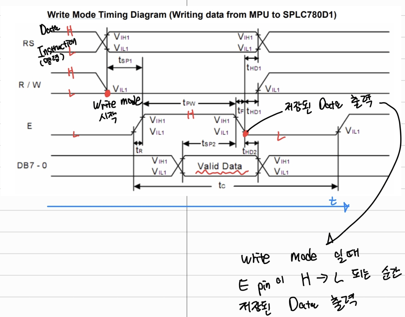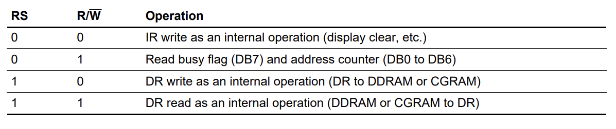→ 위 표와 같이 문자가 CGROM에 저장되어 있고 저장된 문자를 DDRAM을 통해 화면에 출력