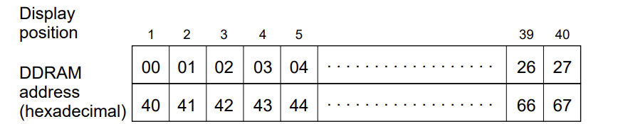 - 1행 주소 : 0x00 ~ 0x27, 2행 주소 : 0x40 ~ 0x67