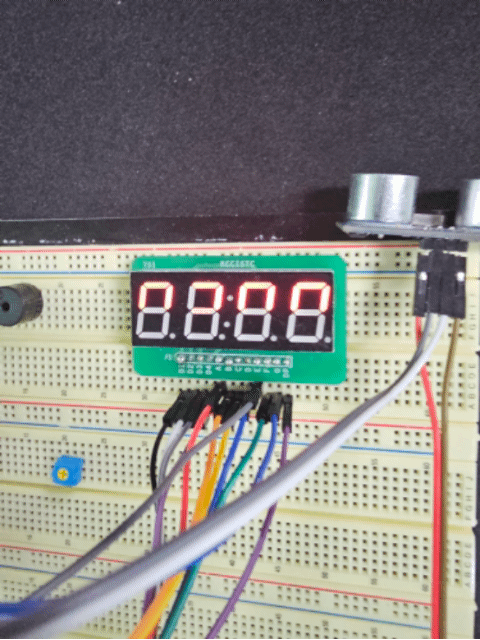 // 거리에 따라 FND 깜빡이는 주기 조절(거리 가까우면 주기 ↓, 계속 출력되는 것처러 보임)