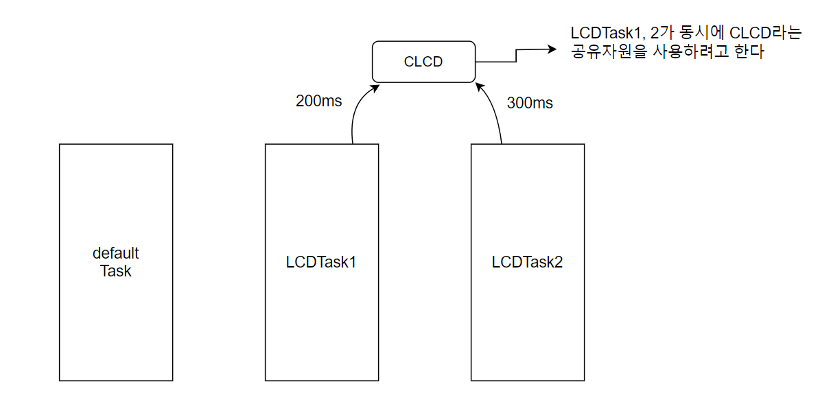 `osMutexWait()` : 공유자원 사용하기 위해 key를 기다림 + 공유 자원에 접근하게되면 Lock