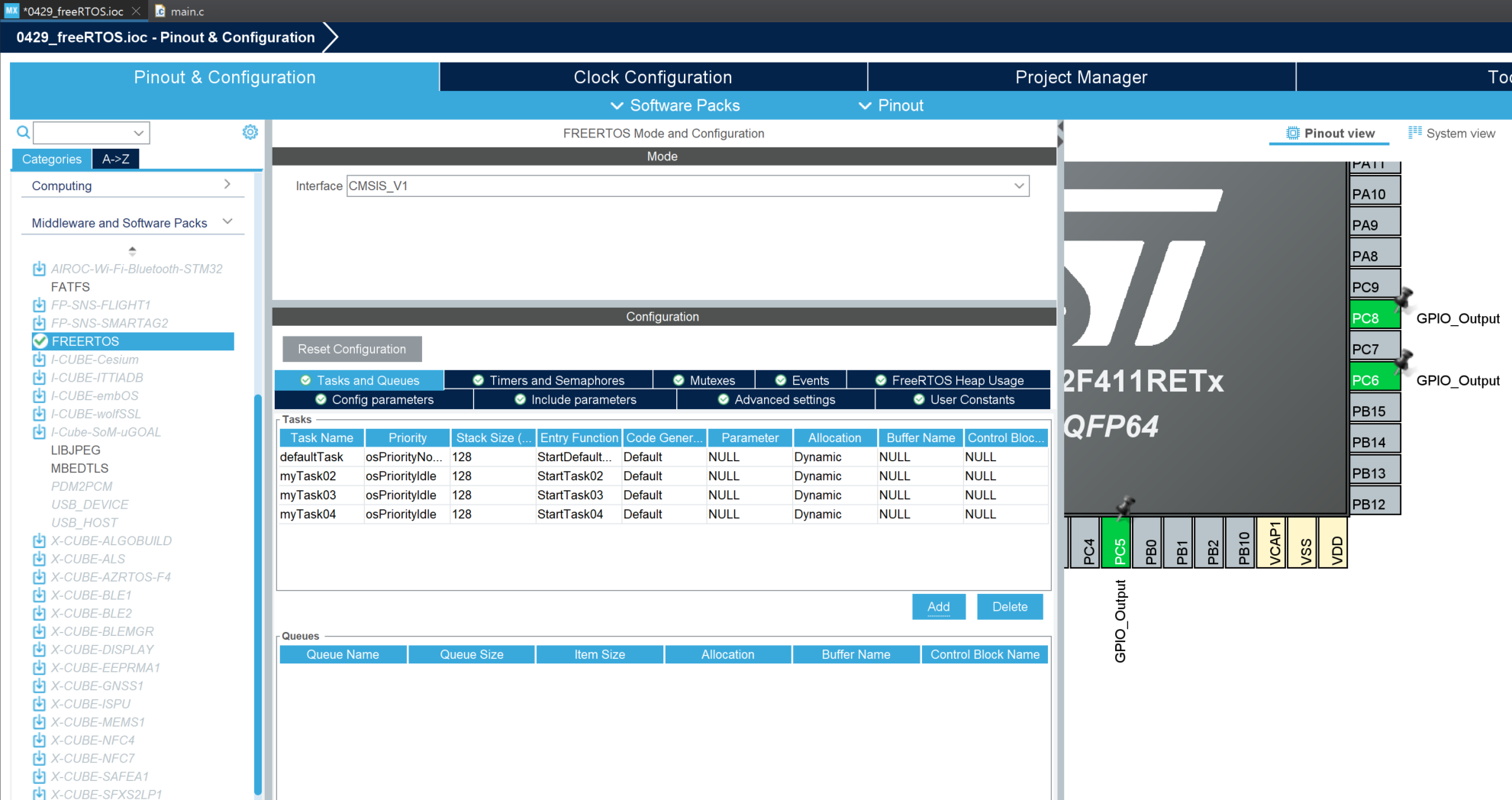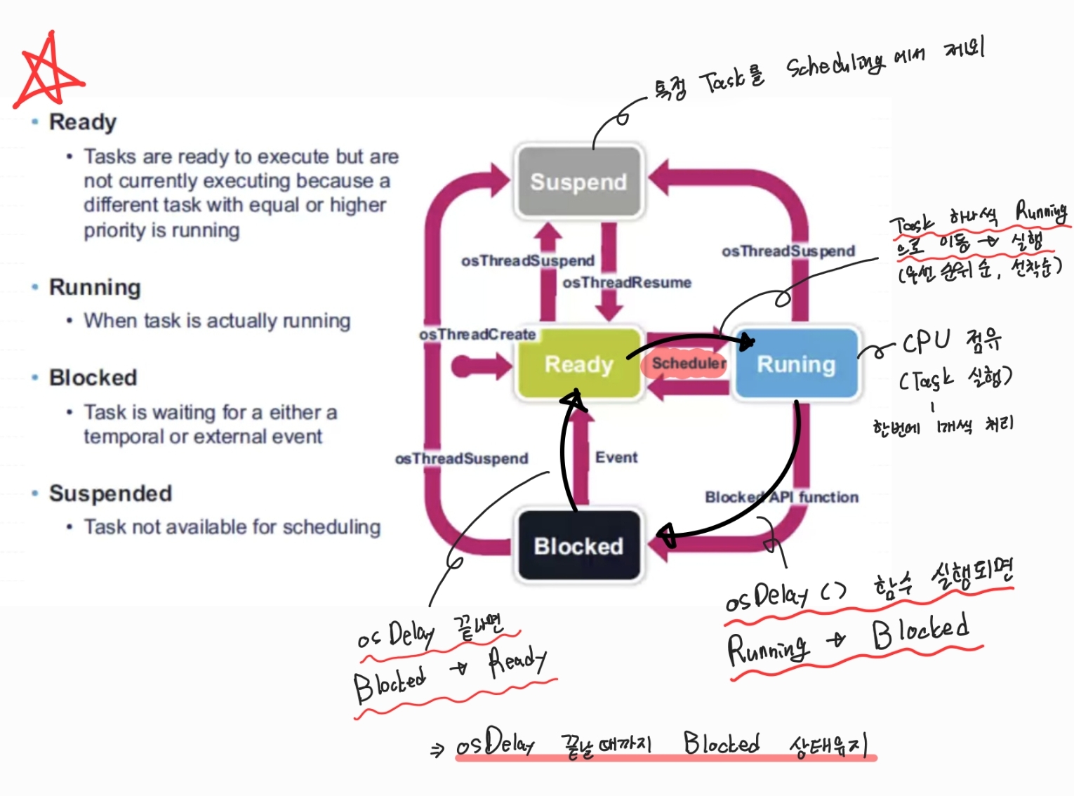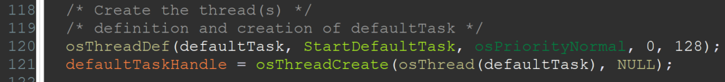 - `osThreadCreate(osThread(defaultTask), NULL)` 메모리에 Task 생성