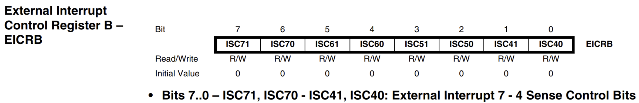 ● EICRB(External Interrupt Control Register - B) : External Interrupt 제어 레지스터(4 ~ 7 → 4개)