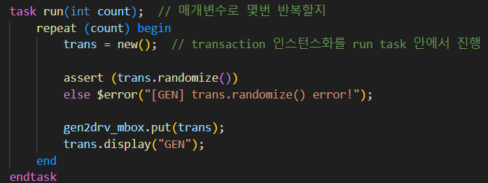 repeat(count) begin // count만큼 계속 반복되면 transaction이 메모리에